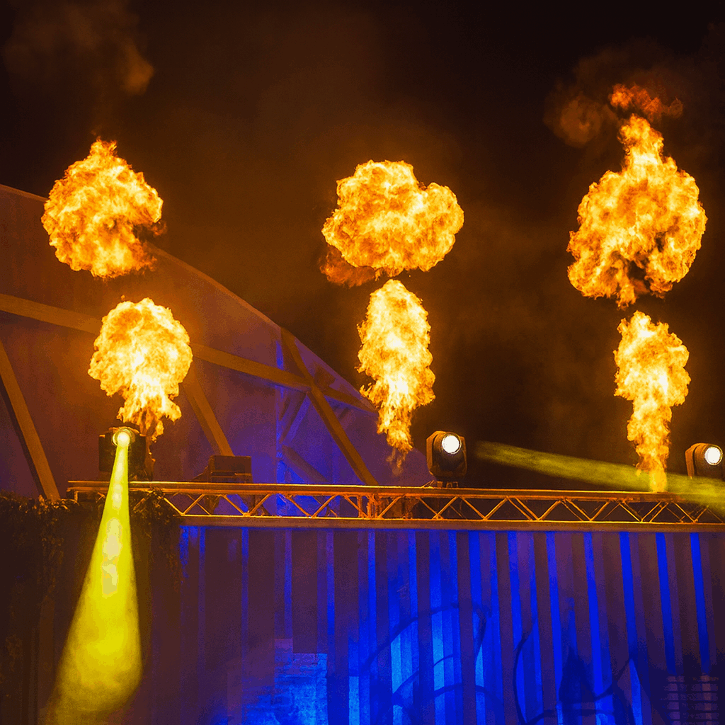 Unsere Flammenprojektoren bringen echtes Feuer auf die Bühne – präzise, sicher und mit maximalem Show-Effekt. Ideal für den großen Auftritt, wenn du dein Publikum sprichwörtlich zum Lodern bringen willst.